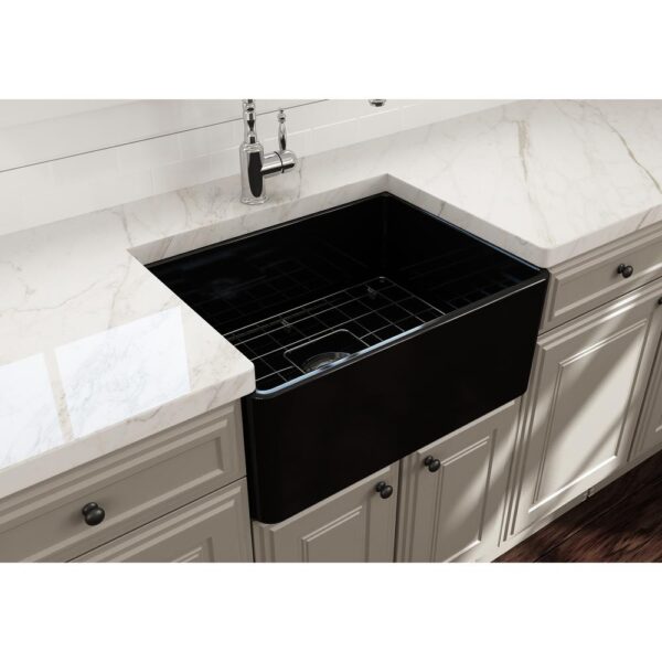 Classico Farmhouse Apron Front Fireclay 24 in. Single Bowl Kitchen Sink with Bottom Grid and Strainer in Black