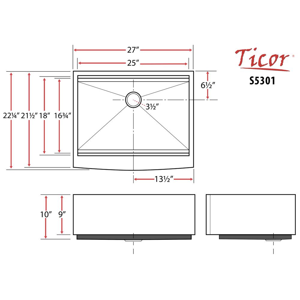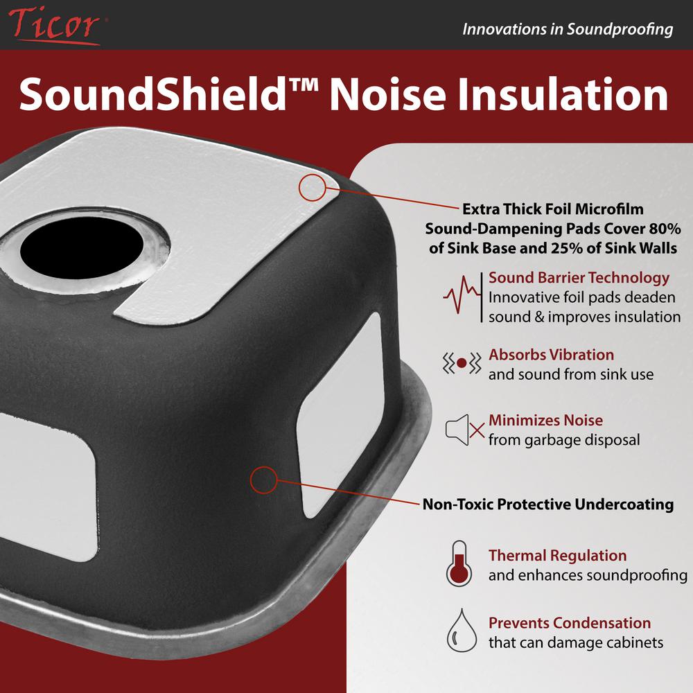 Highly functional and elegant, Bryce Series farmhouse apron sinks are versatile enough to beautify any home kitchen decor while being suited to handle even the most demanding commercial kitchen environments. Handcrafted from premium 16-gauge 304 stainless steel, this innovative sink creates an impressive workstation, featuring a spacious basin that easily accommodates your largest cookware. Ticor sinks are treated with a protective non-toxic anti-condensation coating and are equipped with SoundShield, an innovative foil microfilm layer that dramatically reduces kitchen noise and improves insulation. The satin-brushed stainless steel finish, contemporary zero radius corners, and drain grooves in this sink create a stylish, distinctive, and functional work space.