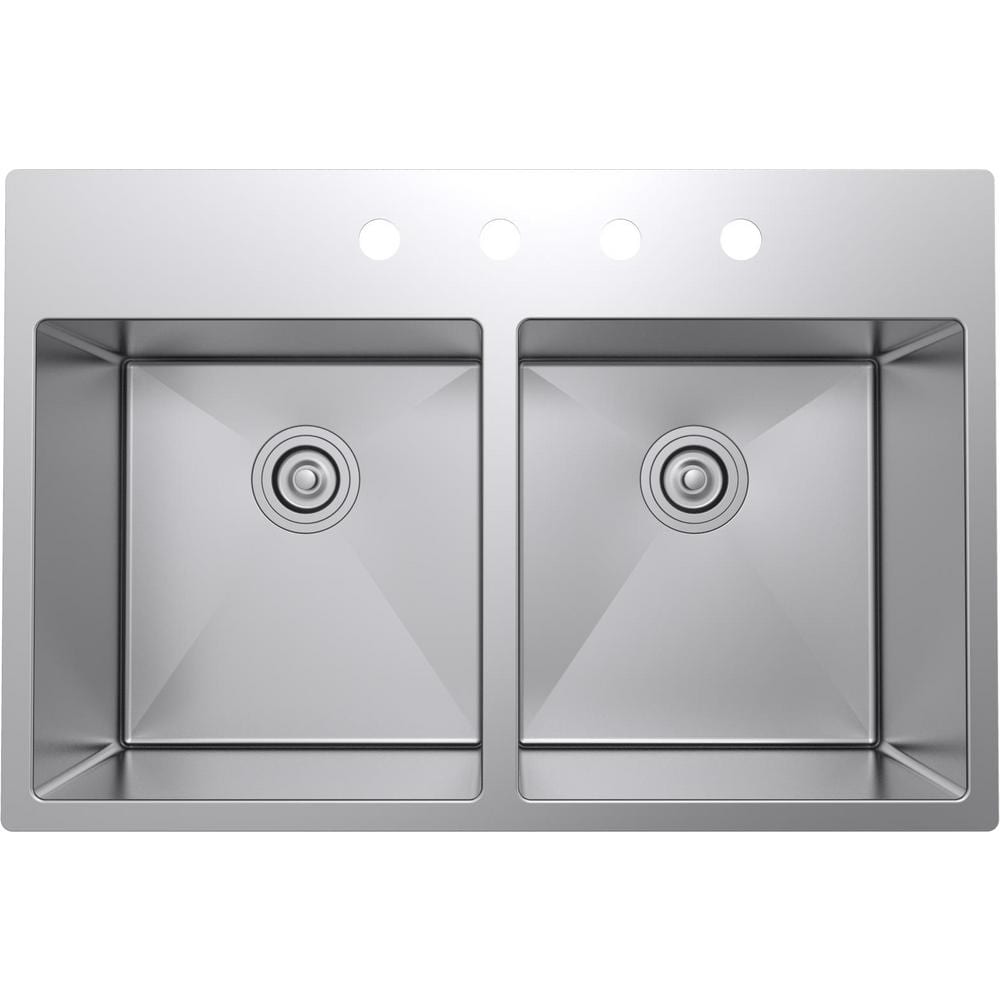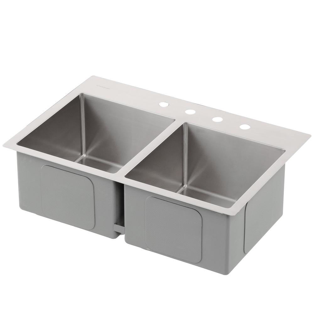 - Drop-in Stainless Steel 33 in. 4-Hole Double Bowl 50/50 Kitchen Sink Kit in Satin