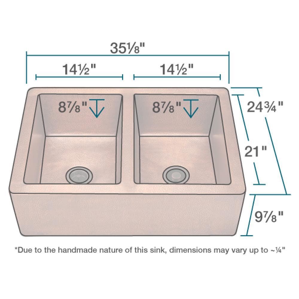 - Farmhouse Apron Front Copper 35 in. Double Bowl Kitchen Sink with Strainer and Flange