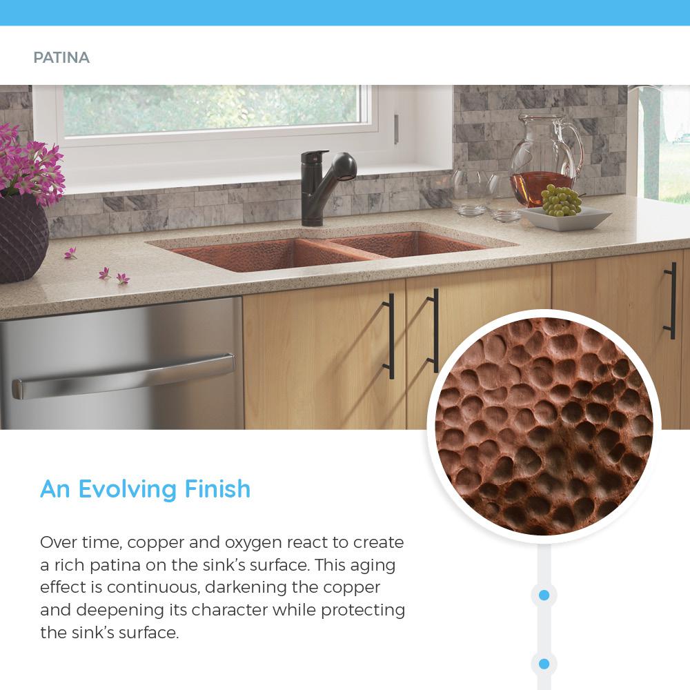 - Living finish – an ever-changing patina adds old-world character to the copper appearance