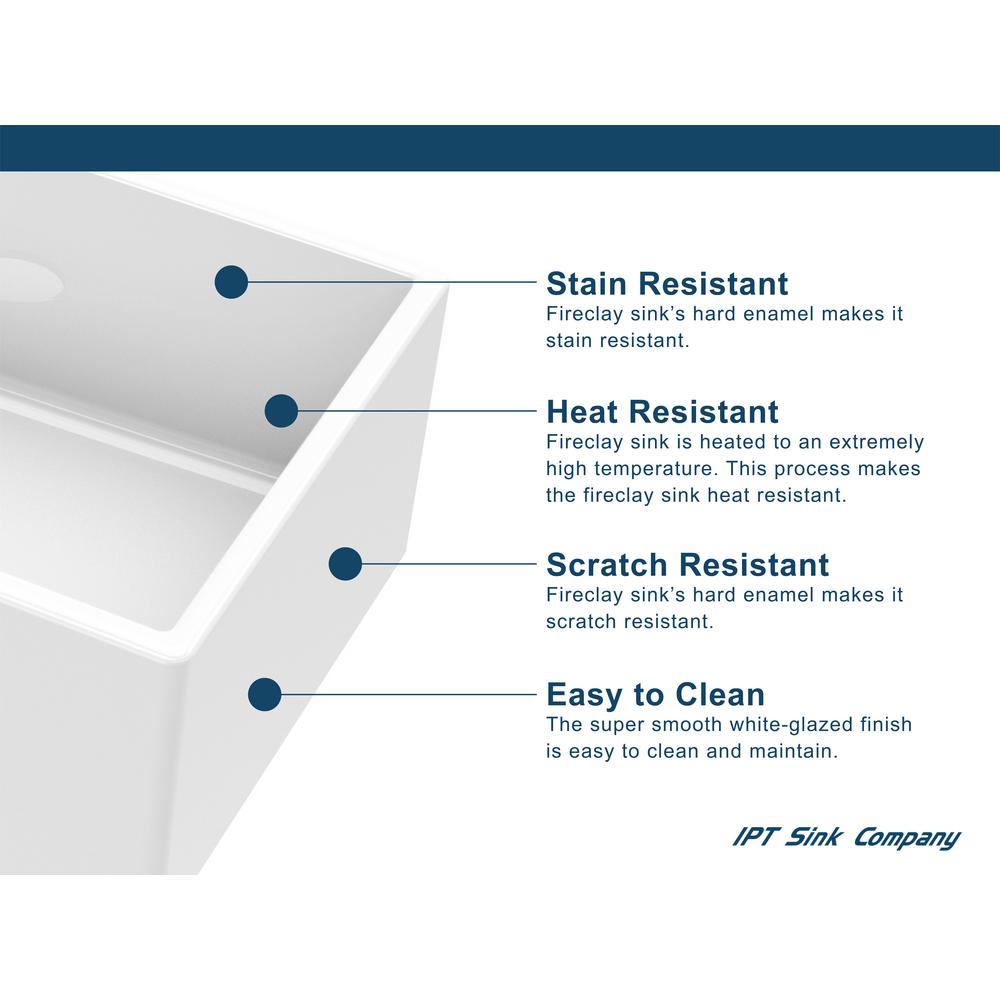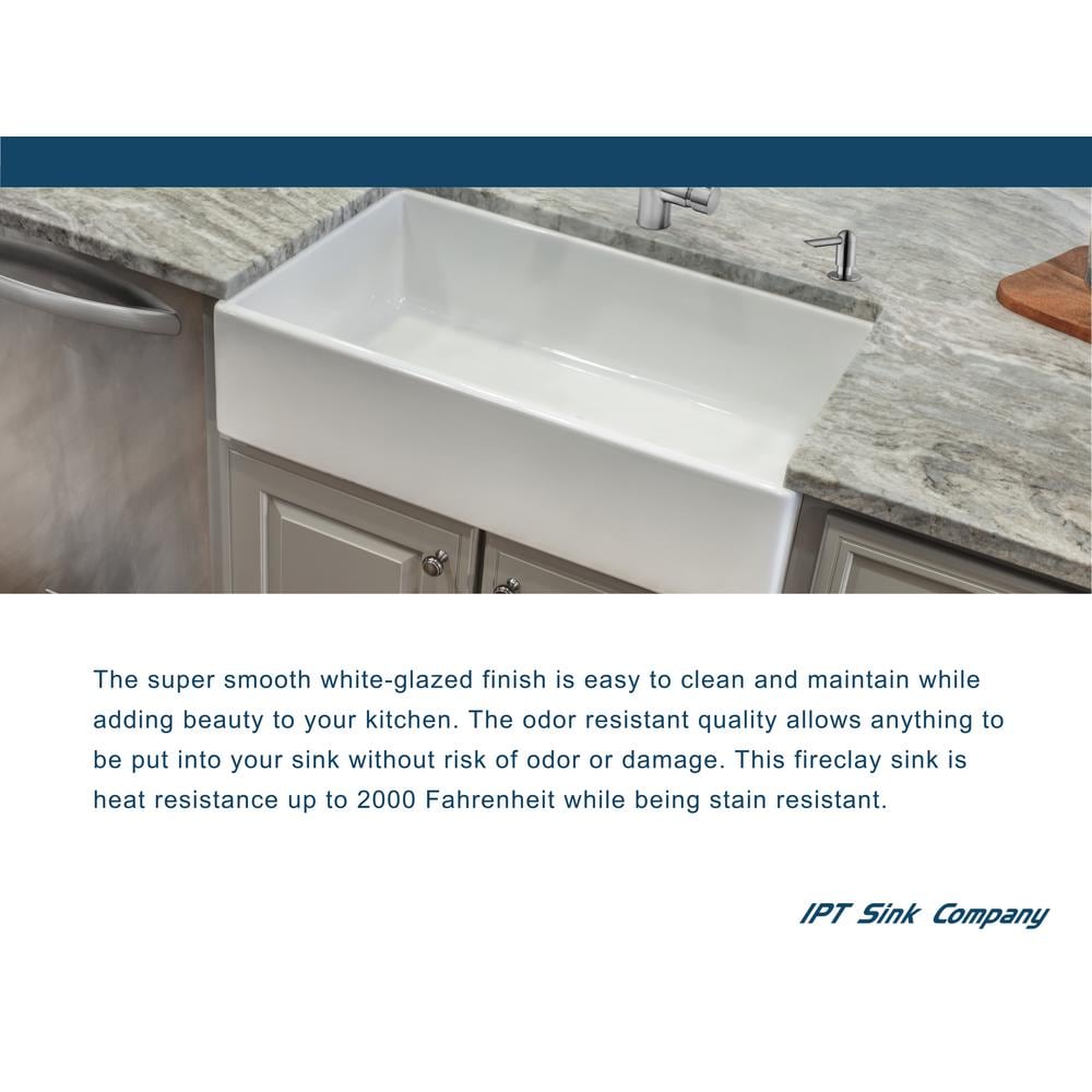 Enduring in beauty and performance, this apron front kitchen sink is a fashionable kitchen fixture with modern farmhouse charm. The white sink is sculpted from fireclay and exposed to extreme temperatures, developing a smooth enamel finish that’s strong, stain resistant and stands up to everyday use. The versatile undermount format can be installed as floating sink or flush beside kitchen cabinetry. Crafted by hand with exceptional care, smooth design details throughout the rectangular basin and apron front panel enhance the sink’s artisanal appearance.