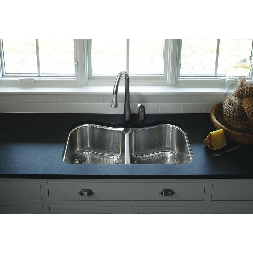 - Staccato Undermount Stainless Steel 32 in. Double Bowl Kitchen Sink