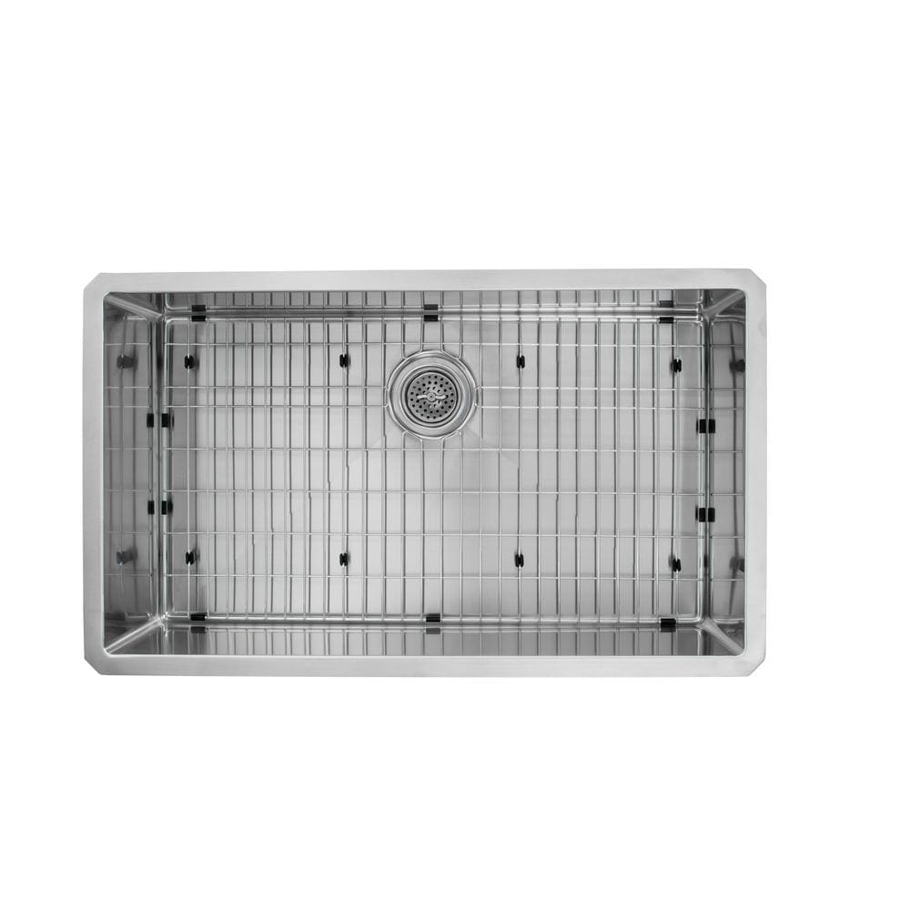 Undermount 16-Gauge Stainless Steel 32 in. 0-Hole Single Bowl Radius Kitchen Sink with Grid and Drain Assembly