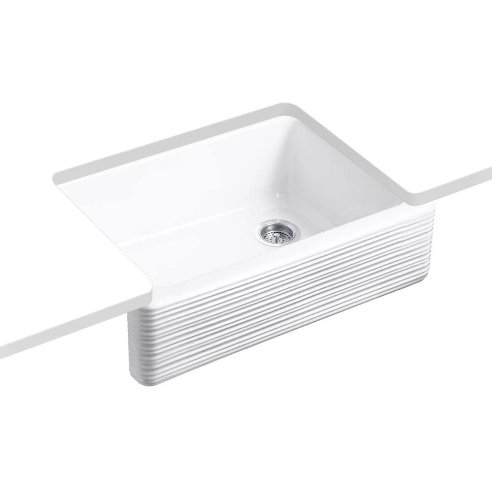 - Whitehaven Farmhouse/Apron-Front Cast Iron 29.6875 in. Single Bowl Kitchen Sink in White