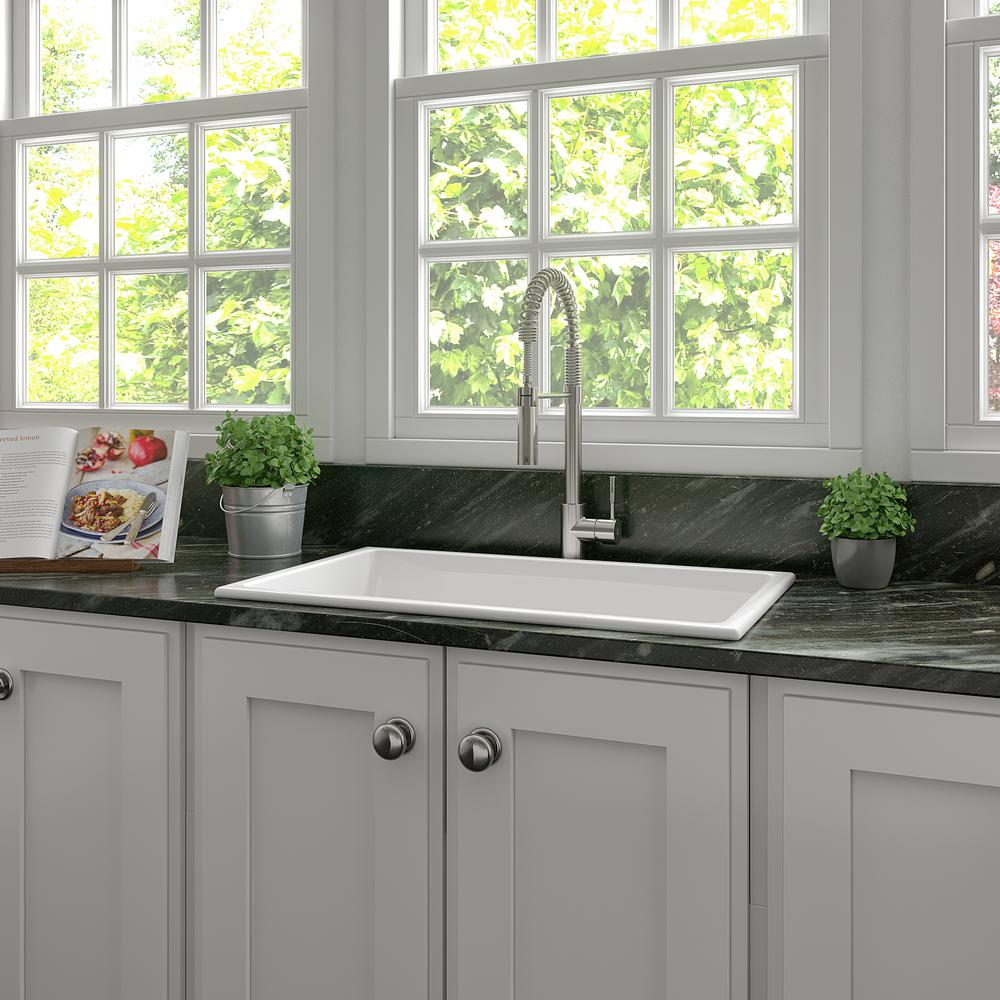 - ZLINE 30″ Rome Dual Mount Single Bowl Fireclay Kitchen Sink with Bottom Grid in White Gloss (FRC5124-WH-30)